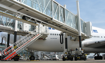 A380登機橋二層U1超高艙門而設(shè)計的登機橋,采用了行業(yè)內(nèi)首創(chuàng)的四輪驅(qū)動行走機構(gòu)及其控制系統(tǒng)。